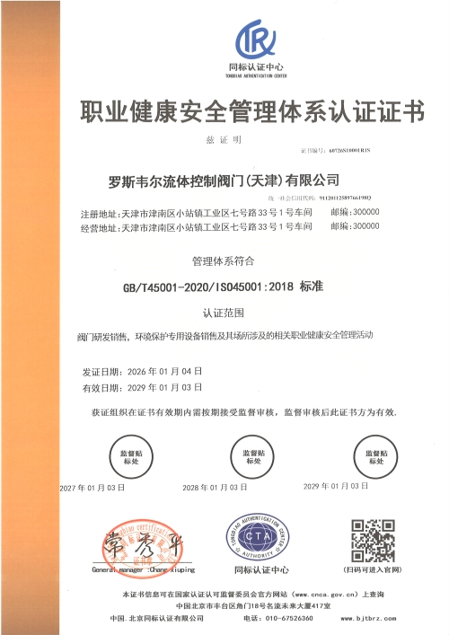 职业健康安全管理体系认证证书中文
