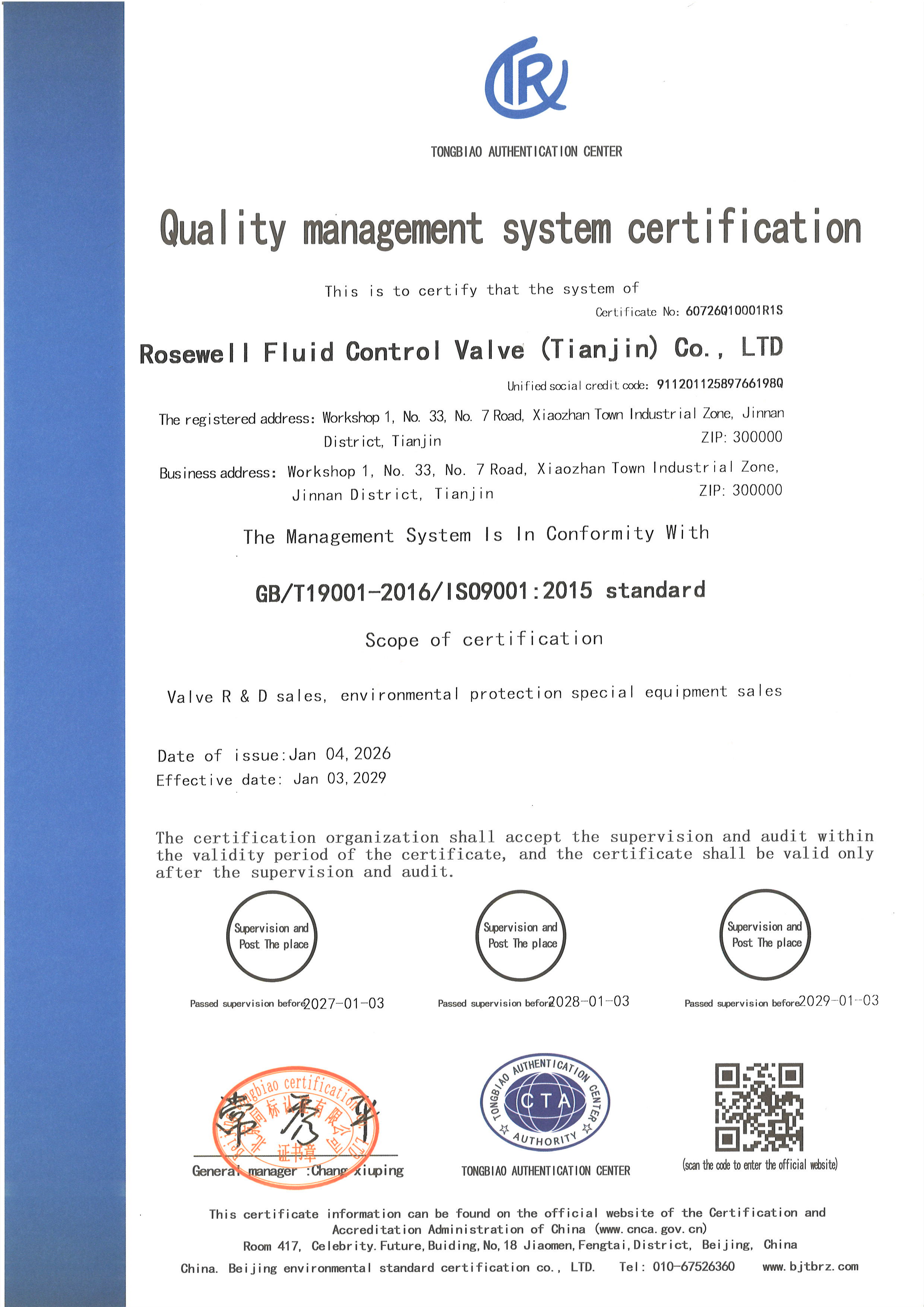 质量管理体系认证证书英文