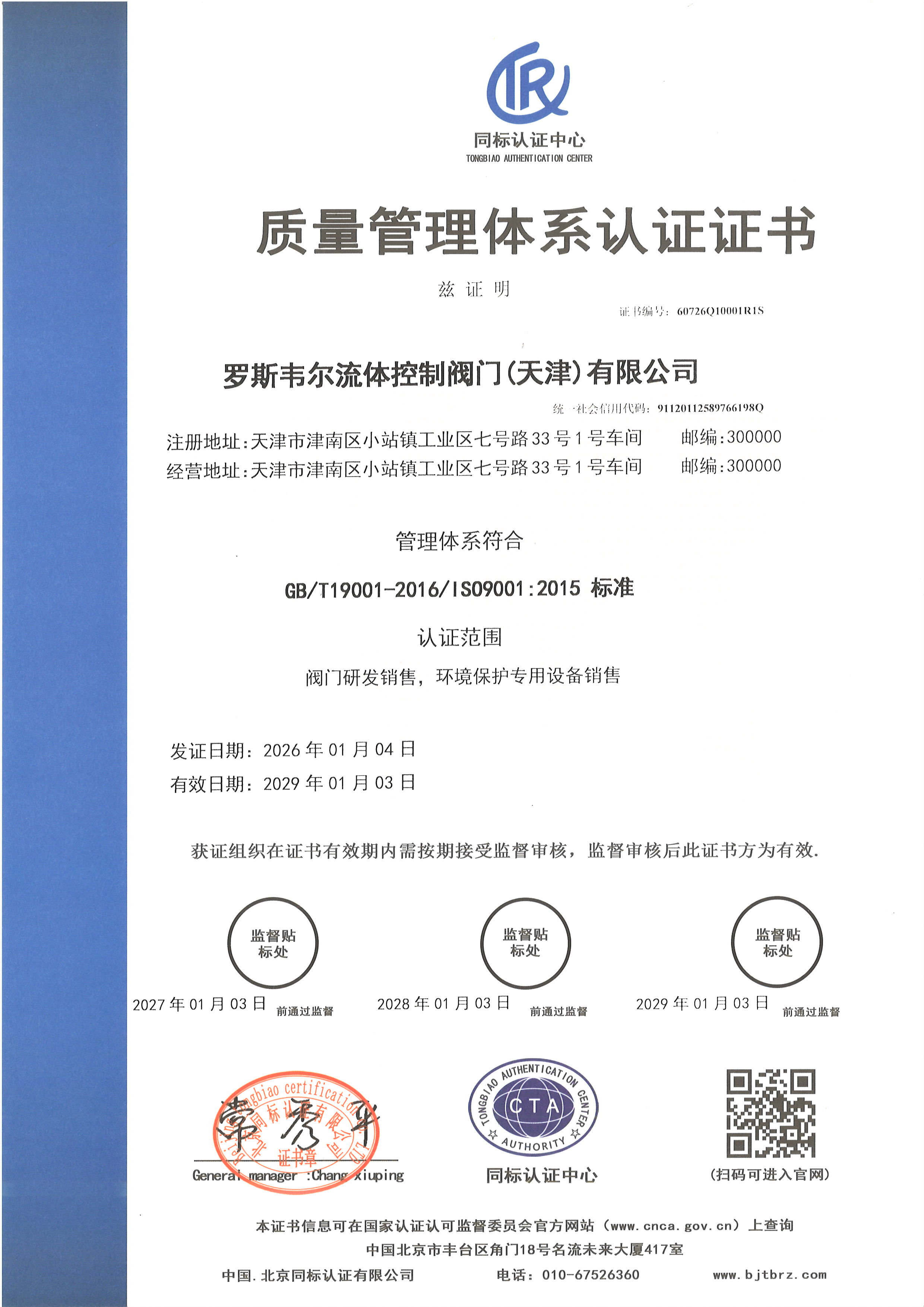 质量管理体系认证证书中文